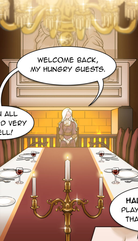 Introduction Comic: Welcome to BANQUET Click on Link to View Page 1 Page 2 Page 3 Round 1: Appetizer Click on Link to View Page 1 Page 2 Round 2: Salad Click on Link to View Page 1 Page 2 Intermission: Coffee Break Click on Link to View Bonus comic: 15 pages Round 3: Main Course Click on Link to View Page 1 Page 2 Epilogue: Dessert TBA Placeholder Placeholder